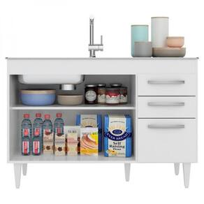 Balcão Gabinete Suécia e Pia Inox 120cm 3 Portas - Lumil Móveis -branco