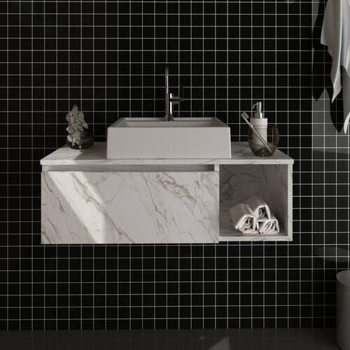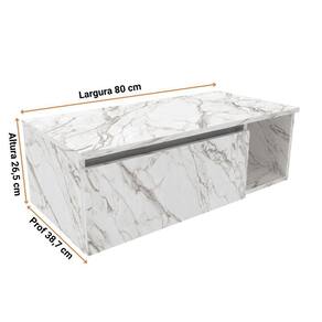Balcão Gabinete Suspenso Para Banheiro 1 Porta E 1 Nicho Bn3601 Tecnomobili Mármore Branco