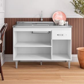Renove sua cozinha com quem entende. O Balcão Gabriela da AJL é a opção certa para você que procura qualidade e beleza em um só produto. Com este gabinete seu ambiente ficará completo e elegante do jeitinho que você sempre sonhou. Produzido em MDP, o balcão possui acabamento em UV, que garante beleza e muito mais durabilidade ao produto. Além disso possui 3 portas com dobradiças resistentes, 1 gaveta Flex (Branco ou Preto) com corrediças metálicas e puxadores de plástico, não é demais? Sua cozinha merece o melhor! Qualidade e tradição que só a AJL tem. Compre já!