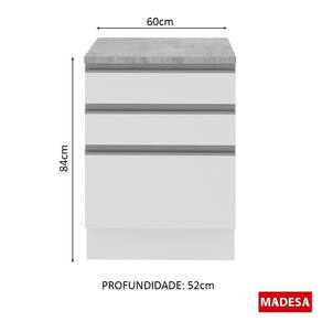 O balcão de 60 cm da Madesa é o produto ideal para quem procura praticidade e beleza. Desenvolvido com materiais de alta qualidade, como puxadores em alumínio, corrediças telescópicas e pintura em poliéster com 7 camadas protetoras que aumentam a resistência e durabilidade do móvel.