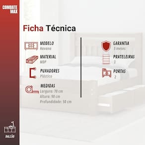 Design contemporaneo: Combinacao de cores e acabamentos que valorizam o ambiente Estrutura resistente: Produzida em MDP com chapas de alta qualidade Puxadores em PVC Black Piano: Estilo e sofisticacao nos detalhes Trilhos telescopicos nas gavetas: Abertura suave e maior durabilidade Tampo robusto de 25 mm: Mais estabilidade e resistencia Pes com regulagem de altura: Adapta-se ao seu espaco com facilidade