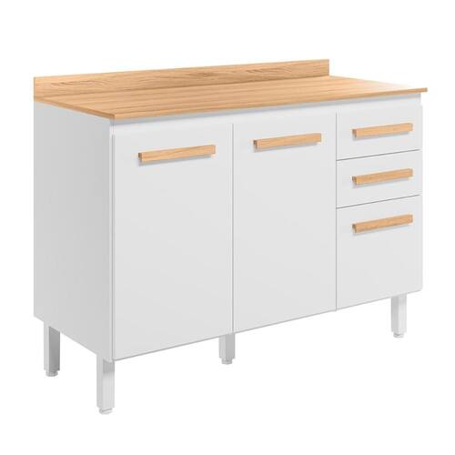 Balcão Intenza com tampo 120 cm com 3 Portas e 2 Gavetas - Branco