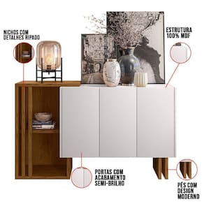 Você tem algum ambiente que está precisando de mais destaque na decoração? Você pode fazer isso através do Balcão Jasmim na cor Ype/Off White. Com estrutura 100% em mdf com 3 portas, prateleiras internas e externas e acabamento em semi brilho. Sobre o tampo, pode adicionar objetos decorativos, livros, afinal, tudo o que vai deixar o móvel com a sua cara e estilo! Agora que você conheceu o balcão Jasmim, está na hora de escolher o seu!
