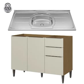 Características: Estrutura em MDP Pintura semi-brilho 03 Portas articuladas com dobradiças metálicas 02 Gavetas com corrediças metálicas Amplo espaço interno Puxador de Plástico Pés em PVC Estrutura Aço Inox Design moderno Concreto aerado Cuba com rebaixe novita Furo para fixação da torneira Superfície plana com canais inclinados Fechamento em dois estágios Acompanha válvula com Pegador em ABS cromado Acompanha Pia e Cuba com Válvula GhelPlus. NÃO ACOMPANHA TAMPO.