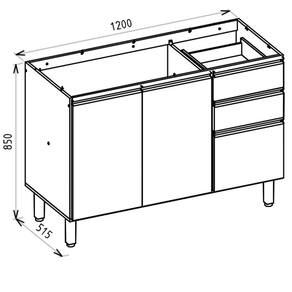 1 Balcao Kali Para Cozinha 3 Gavetas Sem Tampo Nicioli