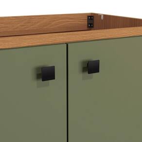 Com até sete camadas de pintura, a caixaria possui acabamento touch na cor canela, com a textura dos veios da madeira, enquanto as portas, em MDP e acabamento BP, são mais resistente contra riscos, arranhões e gotas d'água, e na cor verde frevo, possui acabamento fosco. Uma combinação aconchegante e moderna, que dará ainda mais destaque ao seu espaço, remetendo aos tons da natureza e deixando sua cozinha perfeita.