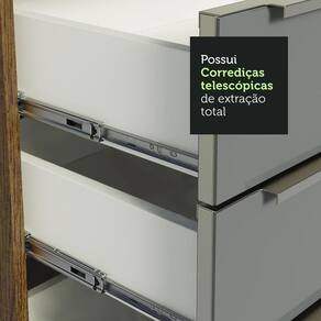 Com profundidade de 60 cm, se destaca pela praticidade e bom espaço interno. É desenvolvido com materiais de alta qualidade, como o revestimento metálico das frentes das gavetas.