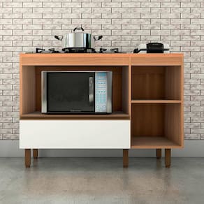 O Balcão Cooktop Macadâmia é uma bela e funcional opção para ampliar o espaço e garantir mais funcionalidade no coração da casa. Produzido em MDP, é um módulo muito robusto, com ótimo acabamento e acessórios de qualidade. Versátil para todas as composições, esse balcão é equipado com ampla gaveta com corrediça metálica - para um deslizar mais suave. Também possui espaço fechado para acomodação de mantimentos e acessórios da cozinha, e aqui a porta contém dobradiças com amortecimento, para um movimento leve e sem ruídos. Além disso, conta com área reservada para acomodação de forno ou micro-ondas, deixando-o à mão para melhor atender a correria da rotina. O puxador em estilo perfil, no tom Champagne, harmoniza perfeitamente com a sofisticada combinação de cores da porta e caixaria. Um móvel perfeito para a organização da casa e que vai garantir um charme a mais na sua cozinha.
