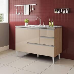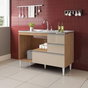 Modelo: BALCÃO MACEIÓ PARA PIA 1,20 2 PORTAS COM GAVETÃO Amêndoa Off White
