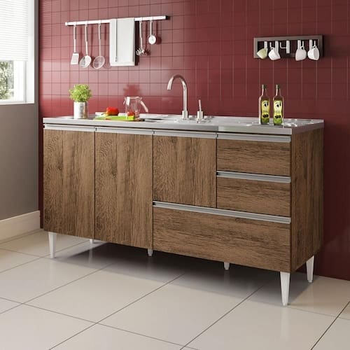 Modelo: BALCÃO MACEIÓ PARA PIA 1,50 3 PORTAS COM GAVETÃO Castanho.