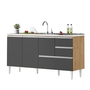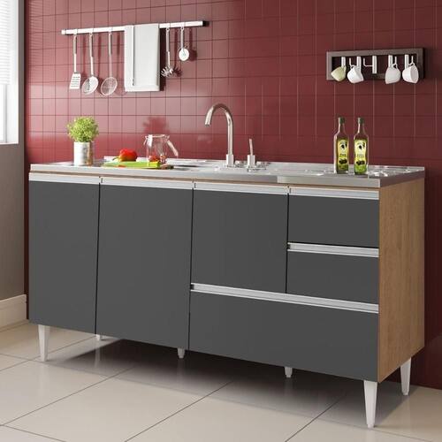 Modelo: BALCÃO MACEIÓ PARA PIA 1,60 3 PORTAS COM GAVETÃO Amêndoa Grafite