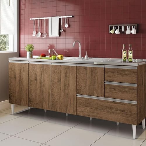 Modelo: BALCÃO MACEIÓ PARA PIA 1,80 4 PORTAS COM GAVETÃO Castanho.