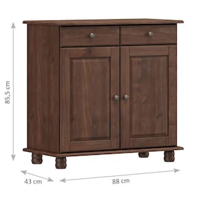Características: Estrutura em Madeira Maciça de Pinus Pintura Acetinada Verniz PU e UV Corrediças Telescópicas Puxadores Metálicos em Ouro Envelhecido Pés Torneados em Madeira Maciça As Gavetas Suportam um Peso Máximo Distribuído de 5Kg As Prateleiras Suportam um Peso Máximo Distribuído de 10kg