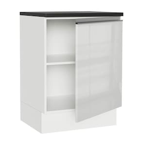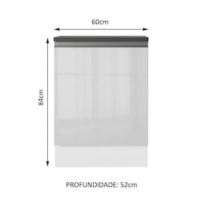 O acabamento da estrutura é em branco fosco e a porta é em branco brilhante. O processo é feito em Pintura Poliéster ecológica de alta resistência, que protege o móvel contra os efeitos da água e do calor.