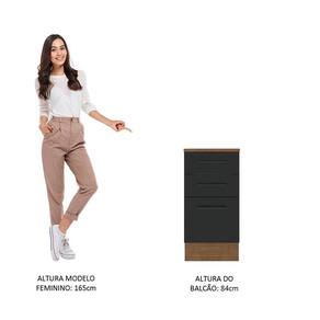 Este balcão de 40cm da linha Agata da Madesa conta com três gavetas, sendo a última mais profunda.