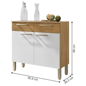 O Balcão possui 2 portas e 2 gavetas destaca-se por sua praticidade e eficiência de uso, podendo ser utilizada como complemento de cozinha.