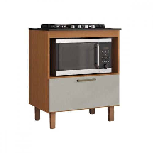 O Balcao Master para Cooktop e a escolha perfeita entre design moderno e funcionalidade! Ele possui um corte no tampo que e compativel com Cooktop de 04 bocas, nicho para forno eletrico ou micro-ondas, uma porta com dobradica metalica e articulador. Tudo proporcionando praticidade ao seu dia a dia, que ira deixar tudo a mao no momento mais gostoso do dia! Alem de possuir pes regulaveis para ajustar a altura.