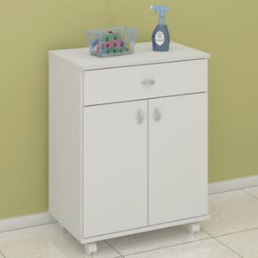 Possui 2 portas e 1 gaveta que suporta até 5 kg.