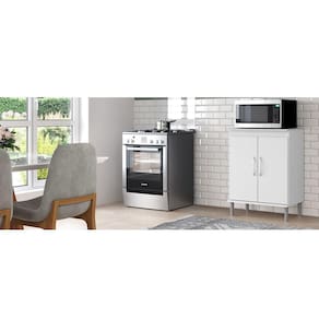O Balcão Microondas - EJ Móveis possui design clássico, complementando a decoração da sua cozinha. Todo produzido em MDP com pés, garantindo maior durabilidade do produto. Pensando na maior organização dos seus objetos, ele conta com duas portas, com amplo espaço interno e bem dividido com prateleira central.