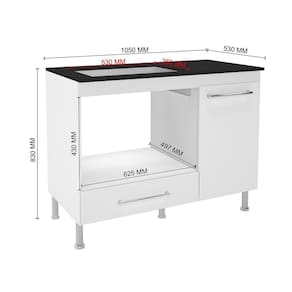 PROFUNDIDADE (CM): 53 | QUANTIDADE DE PORTAS: 1 | MATERIAL: MDP | LARGURA (CM): 105 | ALTURA (CM): 83 | CONTEÚDO DA EMBALAGEM: 1 Balcão, Kit Ferragens e Manual de Montagem | Cor: Branco