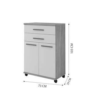 O Balcão Mônaco é perfeito para diversos ambientes e funcionalidades. Utilize para organizar sua cozinha, área de serviço, etc. Com este produto prático e versátil, projetado para dar trazer mais beleza ao seu ambiente com comodidade e qualidade. O produto possui 2 portas com dobradiças metálicas, 2 gavetas amplas, prateleira interna e rodízios para facilitar a locomoção, tudo isso para garantir mais facilidade no seu dia a dia. Este balcão foi desenvolvido para combinar com qualquer decoração, deixando o seu ambiente mais bonito e funcional\nEspecificações o Produto Montado:\nAltura: 103 cm Largura: 73 cm Profundidade: 39 cm Peso: 32Kg Quantidade de Volume: 1\nGarantia: 3 meses Material da estrutura: MDF 18mm Tampo e base em 25 mm Número de Portas: 02 Número de Gavetas: 02 Número de Prateleiras: 01 Rodizio incluso: Sim\nAtenção: Não oferecemos serviço de montagem, mas todos os produtos possuem manual de montagem com o passo a passo. Recomendamos contratar um profissional de montagem. Pode existir diferença de tonalidade entre a foto e o produto devido ao tratamento da imagem e à calibração de cores do monitor Itens que decoram o ambiente nas imagens não acompanham o produto