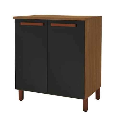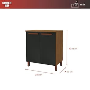 Fabricado com materiais de qualidade, como MDP e MDF de 15 mm, o movel possui acabamento em pintura UV com tons madeirados, garantindo durabilidade e beleza. As dobradicas metalicas com regulagem e os puxadores em PVC duro completam o conjunto com eficiencia e resistencia.