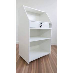 Com furos para passagem de fios, esse balcão é perfeito para acomodar telefones, máquinas de cartão e tomadas, mantendo tudo organizado e facilitando o acesso aos seus dispositivos eletrônicos.