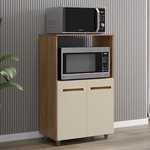 Balcão Multiuso Tais traz organização e praticidade para o seu dia a dia. Produzido em MDP (12/15 mm), com acabamento em pintura UV. Possui portas com dobradiças metálicas, nicho funcional para microondas/forno e puxadores e pés em plástico. Este produto será entregue em 01 volume.