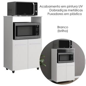 Balcão Multiuso Tais traz organização e praticidade para o seu dia a dia. Produzido em MDP (12/15 mm), com acabamento em pintura UV. Possui portas com dobradiças metálicas, nicho funcional para microondas/forno e puxadores e pés em plástico. Este produto será entregue em 01 volume.