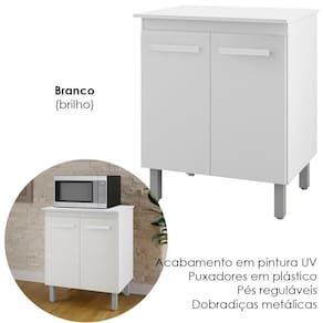 Balcão Multiuso Serena traz organização e praticidade para o seu dia a dia. Produzido em MDP (12/15 mm), com acabamento em pintura UV. Possui portas com dobradiças metálicas, prateleira interna e puxadores e pés em plástico. Este produto será entregue em 01 volume.