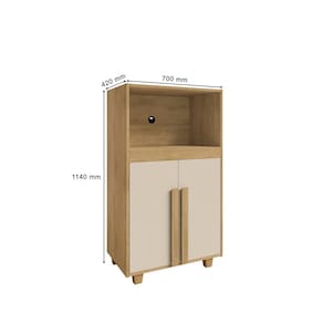 O Balcão Multiuso Escócia é a escolha perfeita para quem busca funcionalidade sem abrir mão do design moderno. Com estrutura resistente e acabamento impecável, ele conta com dois nichos espaçosos ideais para acomodar micro-ondas, forno elétrico ou outros eletroportáteis, além de um amplo armário com portas para guardar panelas, mantimentos ou utensílios com total praticidade.