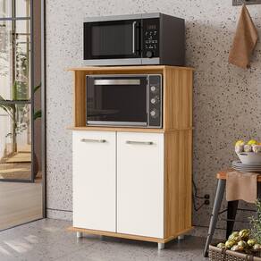 Balcão Multiuso Isis 2 Portas para Forno e Micro-ondas - Nicioli O Balcão Multiuso Isis 2 Portas para Forno e Micro-ondas é a solução perfeita para organizar sua cozinha com praticidade e estilo. Produzido em MDP com pintura UV, oferece resistência e durabilidade. Conta com duas portas com dobradiças metálicas, garantindo fácil acesso ao armazenamento interno. O espaço dedicado para forno e micro-ondas proporciona mais funcionalidade ao ambiente. Os puxadores em ABS agregam um toque moderno ao design, enquanto a prateleira interna e os pés de plástico garantem estabilidade e organização eficiente.