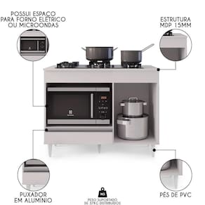 - Fundo em MDP 3mm. - Possui espaço para colocar forno elétrico ou microondas.