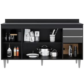 Seu tampo resistente oferece uma superfície prática para apoiar eletrodomésticos, utensílios ou itens decorativos, tornando o dia a dia mais ágil. Já as três portas garantem ótimo espaço interno para armazenar panelas, mantimentos, louças ou produtos de uso diário, mantendo tudo sempre organizado e ao alcance das mãos.
