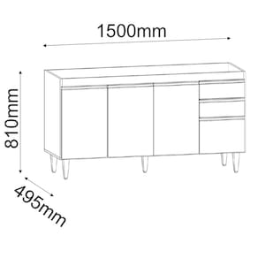 Dimensões do Balcão Multiuso para Cozinha 3 Portas: