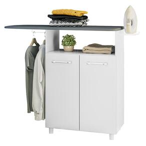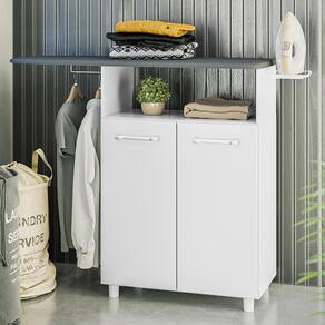 ESPECIFICAÇÕES: Estrutura em MDP Pintura UV 2 Portas Prateleira interna Suporte aramado para ferro de passar Suporte para cabides Puxadores em polietileno Tampo em MDP estofado Não acompanha ferro de passar