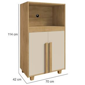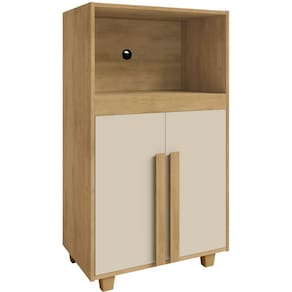 Balcão Multiúso com Nichos para Micro-ondas ou Forno e Utensílios Escócia Cinamomo / Off White Organização, praticidade e estilo na sua cozinha! O Balcão Multiúso Escócia é a escolha perfeita para quem busca funcionalidade sem abrir mão do design moderno. Com estrutura resistente e acabamento impecável, ele conta com dois nichos espaçosos ideais para acomodar micro-ondas, forno elétrico ou outros eletroportáteis, além de um amplo armário com portas para guardar panelas, mantimentos ou utensílios com total praticidade. Seu visual clean combina com qualquer ambiente, seja cozinha, copa ou área gourmet. Os puxadores verticais e os pés elevados completam o visual sofisticado e facilitam a limpeza do dia a dia.