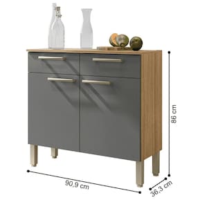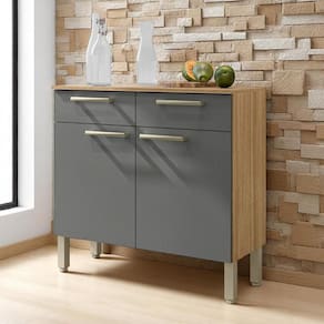 O Balcão possui 2 portas e 2 gavetas destaca-se por sua praticidade e eficiência de uso, podendo ser utilizada como complemento de cozinha.