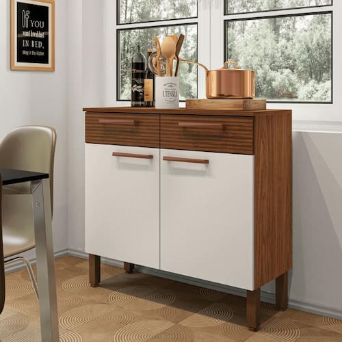 O Balcão possui 2 portas e 2 gavetas destaca-se por sua praticidade e eficiência de uso, podendo ser utilizada como complemento de cozinha.