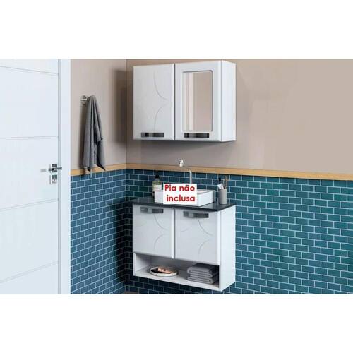 Conjunto de Banheiro c/ Espelho Rubi 2 Portas Branco - Telasul