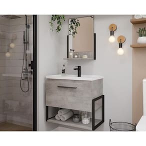 Conjunto de Banheiro Balcão Suspenso Metalo/Ipanema c/ Cuba 60cm e Armário c/ Espelho Cimento - MGM