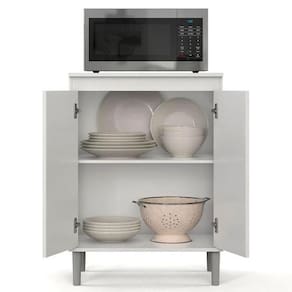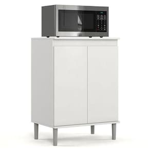 Ele dispõe de um amplo tampo, ideal para acomodar micro-ondas, 2 portas, 1 prateleira interna e pés em PVC anti-umidade. O Balcão EJ irá ajudar a manter tudo em seu devido lugar ocupando pouco espaço.