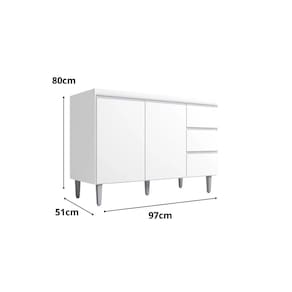 Balcão P/ Pia Gabinete Andréia 100cm 2 Portas 3 Gavetas - Branco