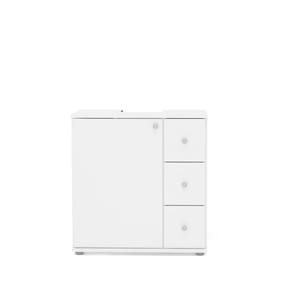 Características: Estrutura MDP Pintura UV 01 Porta articulada 03 Gavetas com corrediças metálicas Puxadores de Plástico Peso suportado na Prateleiras: 3kg Peso suportado nas Gavetas: 1kg