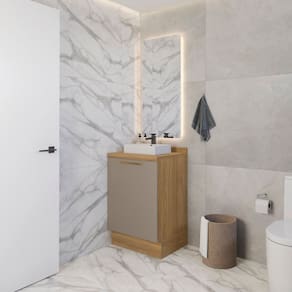 Seu banheiro lindo e completo com o conjunto CB840 da Linha Botanic. Produzido em MDP de 15mm, o que garante robustez e qualidade, ele conta com o espaço ideal para itens de higiene e toalhas. O balcão uma porta 60cm acompanha tampo, em MDP com 25mm, e pintura touch na cor nogueira, garantindo um acabamento perfeito. Com rodapés, ele acompanha as ferragens para ser montado suspenso na parede, deixando seu banheiro do seu jeito. E com sete camadas de pintura, a caixaria possui pintura touch na cor nogueira, com a textura dos veios da madeira, e as portas, na cor cinza, possuem acabamento fosco. O diferencial fica para as dobradiças com amortecimento, que garantem um fechamento suave e sem ruídos, e os puxadores em alumínio na cor dourada completam o diferencial do produto. Acabamento da Porta: Pintura Acabamento da Prateleira: Pintura Acabamento dos Pés: Pintura Altura dos Pés: 16 cm Ambiente Principal: Banheiro Complexidade da Montagem: Média: pode ser montado por mais de uma pessoa e/ou necessite de maior conhecimento para montagem Cor: Nogueira/Cinza Cor do Produto: Nogueira/Cinza Cor Interna: Nogueira Escala de Brilho: Fosco Escala de Brilho da Porta: Fosco Escala de Brilho da Prateleira: Fosco Itens Inclusos: 1 Balcão, 1 tampo, manual de montagem e ferragens Manual de Montagem e Instalação: https://product-hub-prd.madeiramadeira.com.br/908638/documents/472d1f97-33ca-470b-befb-56a9a36f84862074439544517189788998572.pdf Material da Porta: MDP Material da Prateleira: MDP Material do Puxador da Porta: Plástico Material dos Pés: MDP Material Principal: MDP Necessita Montagem: Sim Origem do Produto: Nacional Pés Reguláveis: Não Peso: 6,3757 kg Peso Máximo por Prateleira: 7 kg Possui Espelho: Não Possui Pés: Rodapé Possui Portas: 01 Possui Prateleiras: 01 Possui Rodízio: Não Recomendações de Uso, Manutenção e Limpeza: Use um pano limpo e ligeiramente umedecido em água ou álcool (recomendamos álcool etílico hidratado). Logo após, seque a superfície com um pano seco e macio. Em grandes superfícies limpe pequenas áreas de cada vez, trabalhando de baixo para cima. Sapatas Niveladoras: Não Sistema de Montagem: Philips Suporta Até (kg): 15 kg Tipo de Dobradiça/Corrediça da Porta: Metálica Tipo de Porta: Bater Tipo de Puxador da Porta: Externo