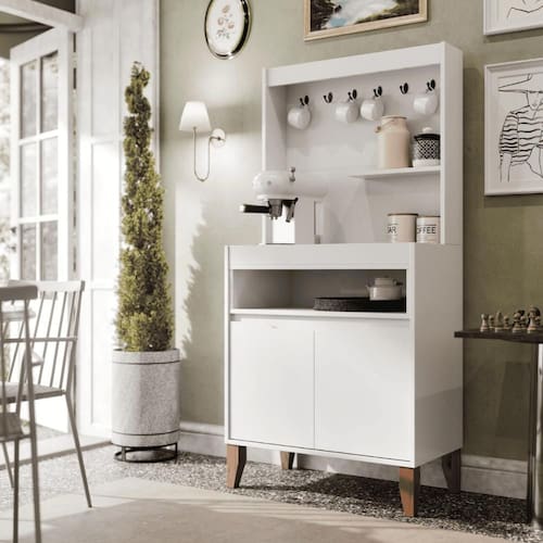 Transforme seu espaço com a elegância e a funcionalidade do Aparador Buffet, a peça ideal para quem busca sofisticação e praticidade. Seu design moderno combina perfeitamente com qualquer ambiente, seja na cozinha, sala de jantar ou área de café. Dimensões do produto montado: Altura: 147 cm Largura: 71 cm Profundidade: 39 cm Características: - Material MDP/MDF - Cor branco - Porta - Prateleira - Nicho - Pés Itens Incluso: 01 Aparador Buffet. Kit completo para montagem. Manual de montagem. Observações: - Não nos responsabilizamos pela montagem do produto. - Sistema de Montagem: Parafusos, Cavilhas e Tampos. - É recomendado que a montagem seja feita por um profissional qualificado. - As imagens indicam uma sugestão de uso e são apenas ilustrativas, os objetos decorativos não estão inclusos. - Ao iniciar a montagem, forre o chão com o papelão das embalagens para proteger as peças de arranhões. Instruções e Cuidados: Limpar com pano seco, manter em lugar livre de umidade, ao abrigo de exposição direta ao sol.