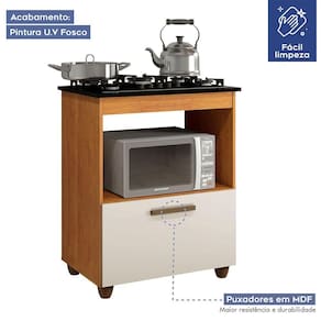Caracteristicas: Material Principal: MDP Acabamento: Pintura UV Escala de Brilho: Fosco Possui Portas: 1 Tipo de Porta: Basculante Material do Puxador: MDF Possui Prateleiras: 1 Possui Gavetas: Nao Tipo de Corredica: Nao possui Possui Pes: 4 Cooktop incluso: Nao Necessita Montagem: Sim Nao usar produtos abrasivos Recomendacoes de Uso, Manutencao e Limpeza: Limpar com flanela limpa e seca.