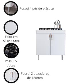 Balcão Para Cooktop 0,80m 5 Bocas 2 Portas Turimbranco