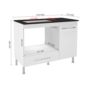 O balcão para cooktop e forno de 105 cm reúne características decorativas, delicadas e práticas em seu design, possibilitando a montagem em diversos ambientes.