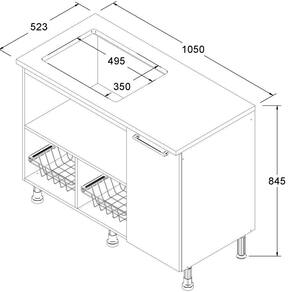 Balcao Para Cooktop 1 Porta 105 cm BA60 Branco Dtall